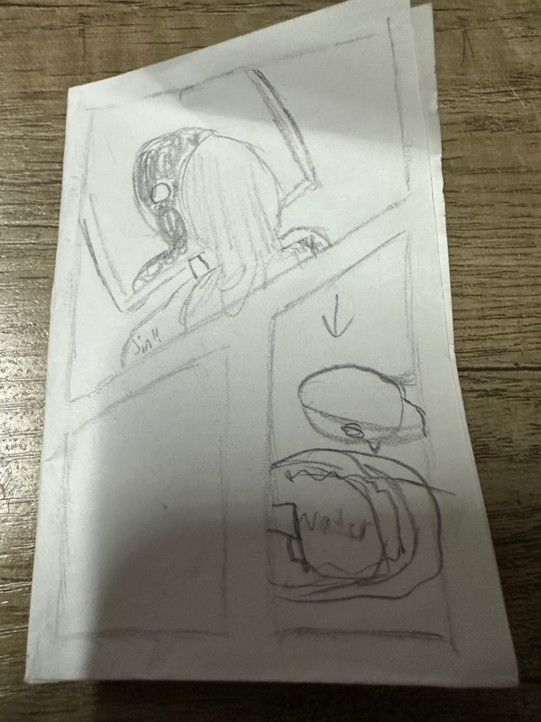 The whole script is inspired by Leonardo's self-portrait as the script is one in it of itself. A portrait of what my life is like as working is essentially my life and there's no time to rest as the world keeps getting harder. It's set as a way to remind myself of the words I use to get through the day, while also serving as a sort of self-awareness for my lack of rest.